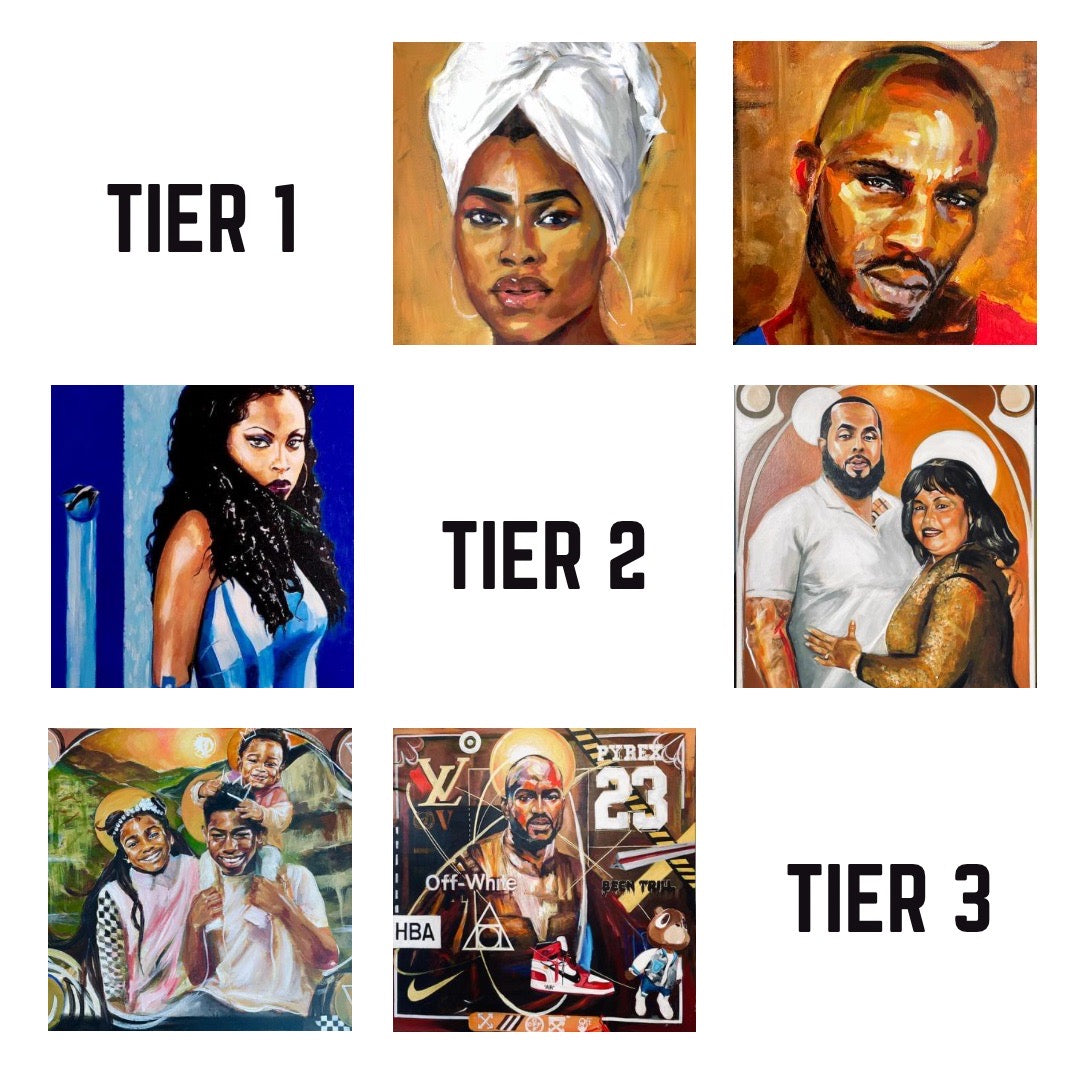 Acrylic on canvas w/ satin or gloss finish. Once purchase is complete, respond to confirmation email with the photograph of your choice along with any special details (depending on selected tier) you'd like Imani to add to your painting!